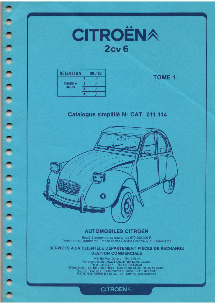 | 2CV6 - TOME 1 | 011.114 | 09/83 |