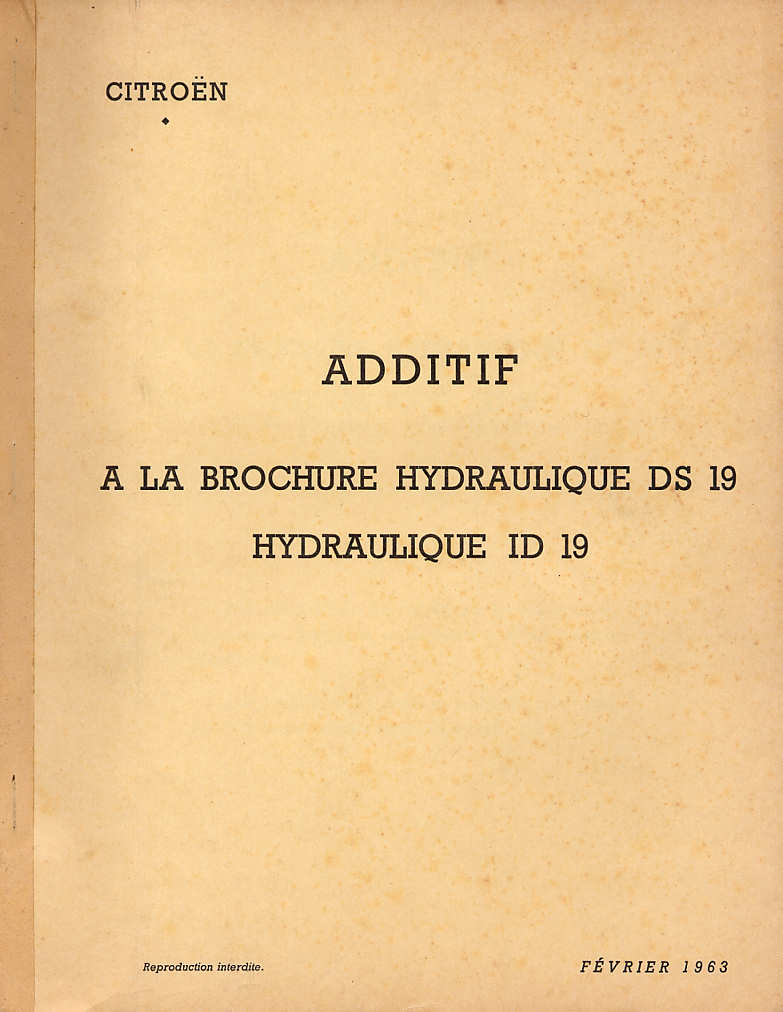 | Additif à la brochure Hydraulique DS 19 / Hydraulique ID 19 | Pas de Réf | 02/63 |
