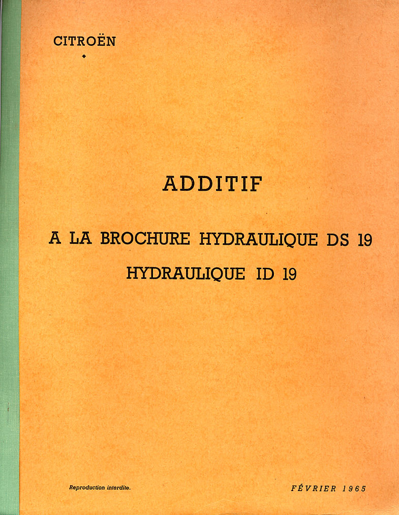 | Additif à la brochure Hydraulique DS 19 / Hydraulique ID 19 | Pas de Réf | 02/65 |