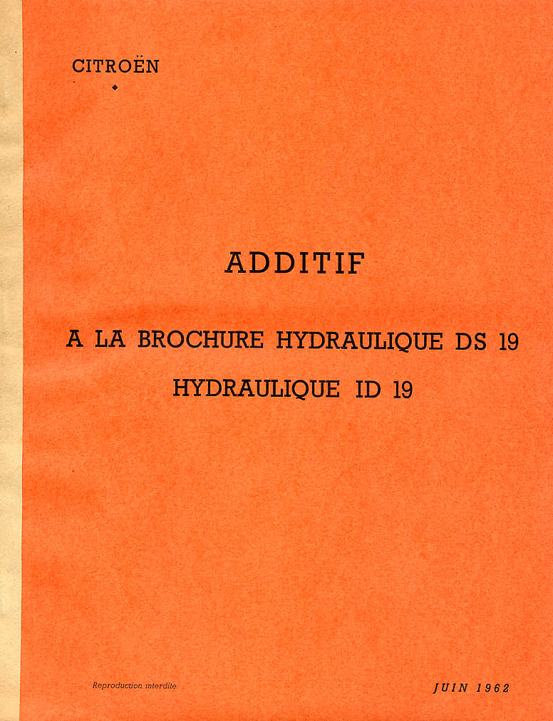 | Additif à la brochure Hydraulique DS 19 / Hydraulique ID 19 | Pas de Réf | 06/62 |