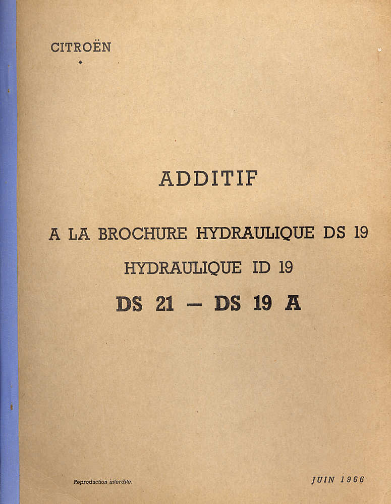 | Additif à la brochure Hydraulique DS 19 / Hydraulique ID 19 - DS 21 - DS 19 A | Pas de Réf | 06/66 |